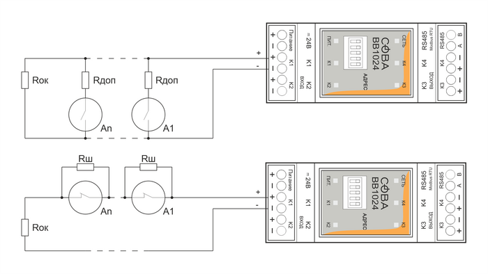 Подключение устройств с типом выхода «сухой контакт»
